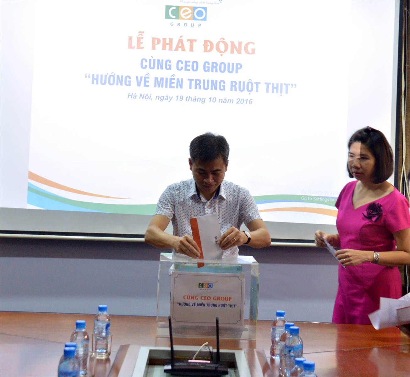Chương trình chung tay ủng hộ miền Trung sẽ tiếp nhận quyên góp của toàn thể CBNV CEO Group và các Công ty có văn phòng tại Tòa tháp CEO từ ngày 19/10/2016 đến hết ngày 26/10/2016. CEO Group sẽ sớm cử đoàn công tác trực tiếp đến một số địa phương vùng lũ để trao tận tay đồng bào và có những hành động sẻ chia thiết thực.