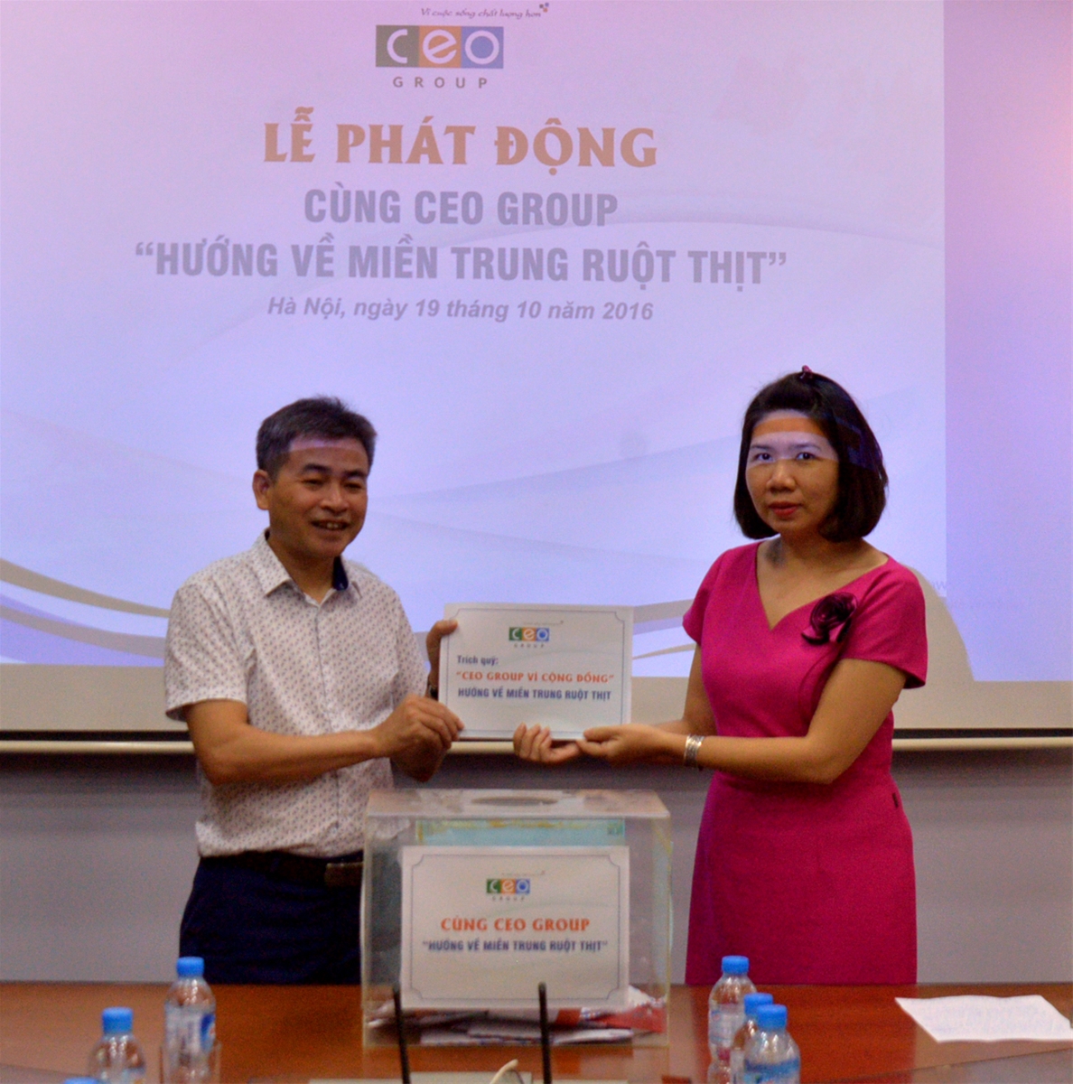 Ngày 19/10/2016, CEO Group đã tổ chức Lễ phát động chương trình “Cùng CEO Group hướng về miền Trung ruột thịt” để ủng hộ đồng bào các tỉnh miền Trung bị thiệt hại do trận mưa lũ lịch sử vừa qua.