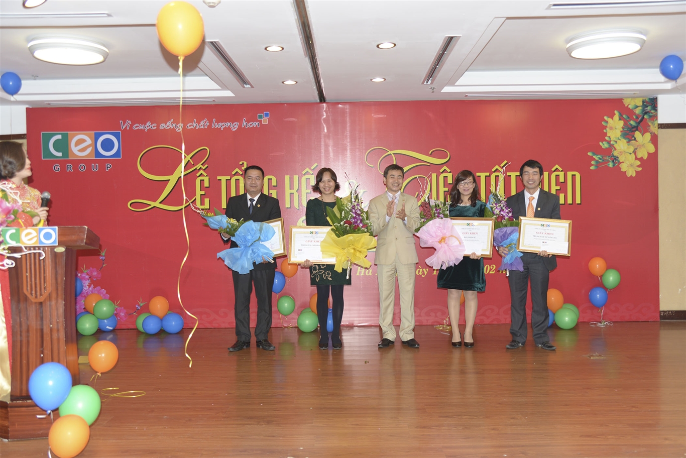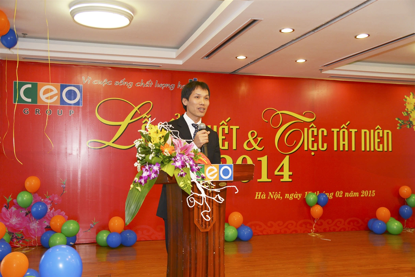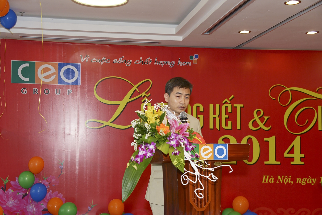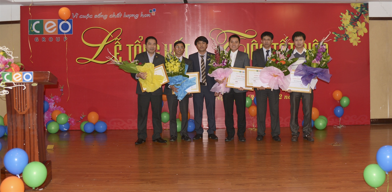 Hòa trong không khí vui tươi, rộn ràng của những ngày cuối năm Giáp Ngọ, chiều ngày 13/02/2015, Công ty Cổ phần Đầu tư C.E.O (CEO Group) đã tổ chức Lễ Tổng kết và tiệc tất niên 2014 đánh dấu một năm thành công vượt bậc của CEO Group. Sau một năm chung sức vượt qua nhiều khó khăn, thách thức để gặt hái thành công, đây là dịp toàn bộ Ban lãnh đạo và toàn thể CBNV của CEO Group cùng nhìn lại chặng đường đã qua, chia sẻ những tâm tư nguyện vọng, cùng quyết tâm phấn đấu để đạt mục tiêu năm mới với nhiều thành công hơn nữa.