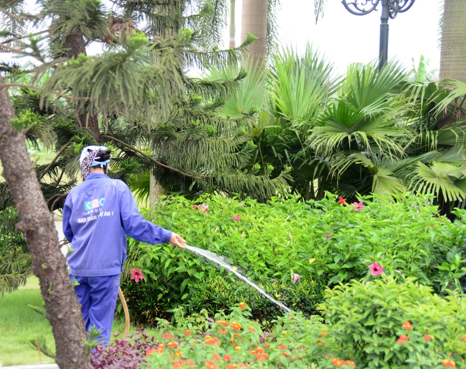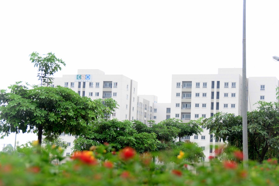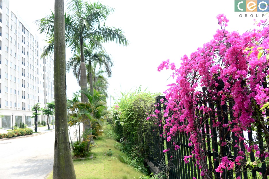 Hoa và cây xanh mát bao quanh khu NOXH