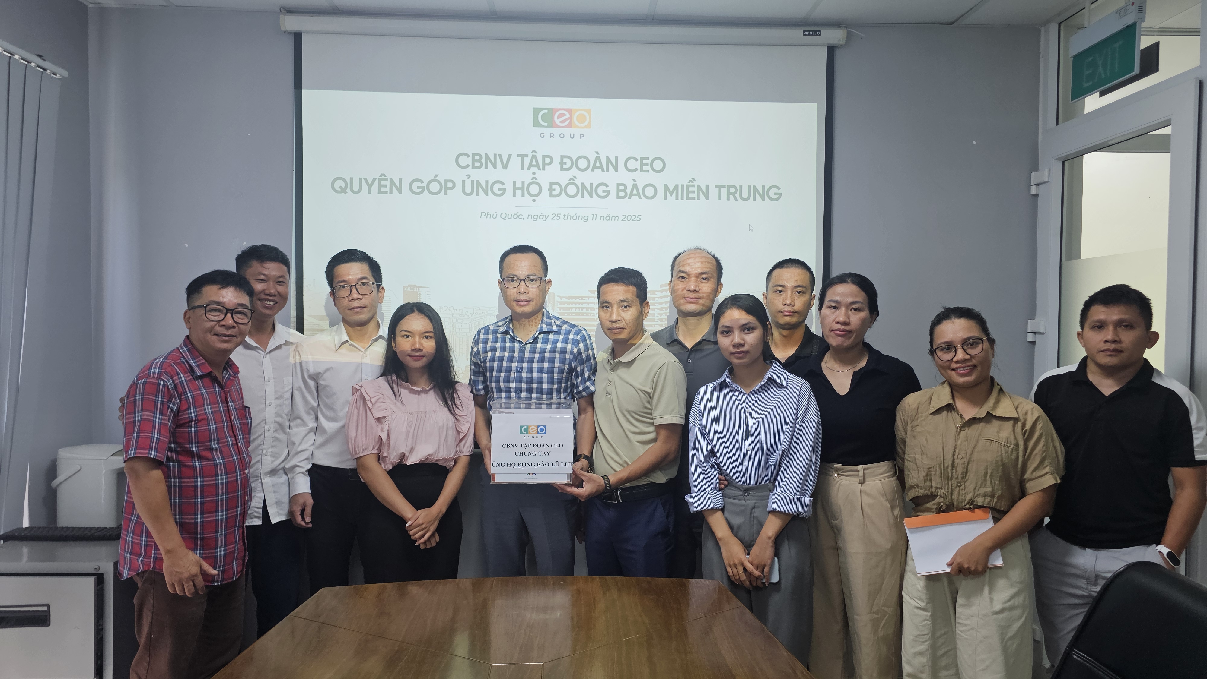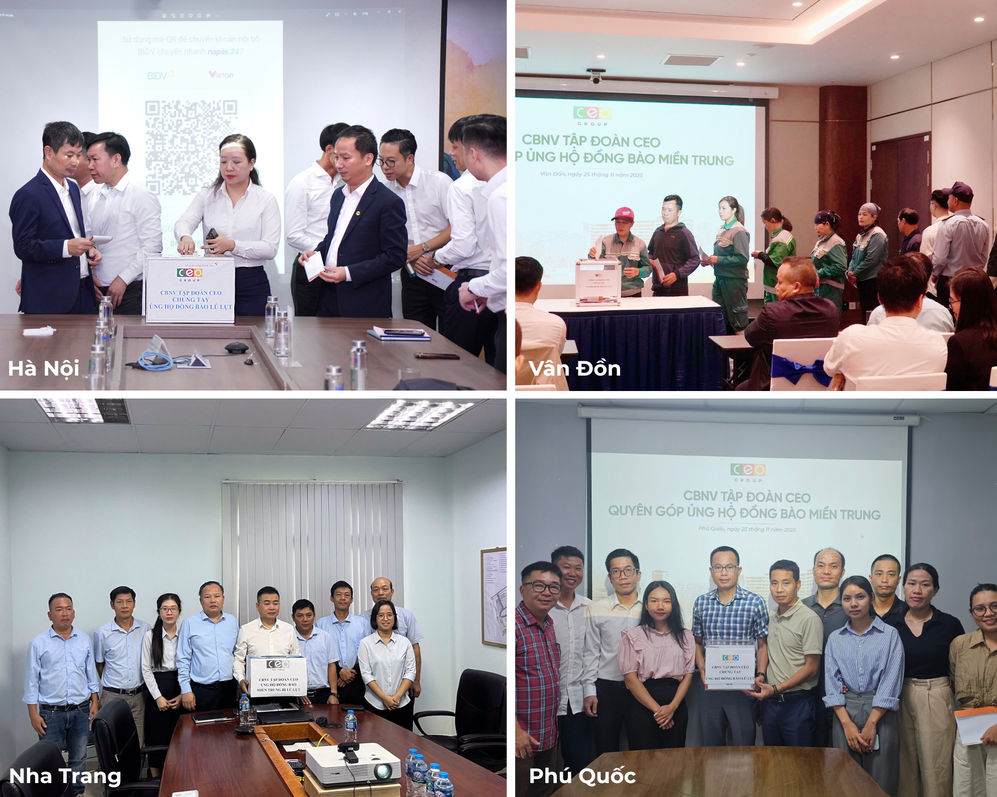 Đại gia đình CEO Group đã lan tỏa tinh thần “One CEO – One Family – One Team”. Mỗi tấm lòng sẻ chia là nguồn động viên lớn để người dân miền Trung tiếp tục kiên cường. Mỗi sự đóng góp, dù nhỏ bé, đều thắp lên một ngọn lửa hy vọng. Toàn bộ số tiền quyên góp từ các cán bộ nhân viên sẽ được Tập đoàn CEO tổng hợp và chuyển tới Ủy ban Mặt trận Tổ quốc Việt Nam, trong thời gian sớm nhất nhằm hỗ trợ người dân khắc phục thiệt hại và sớm ổn định cuộc sống.